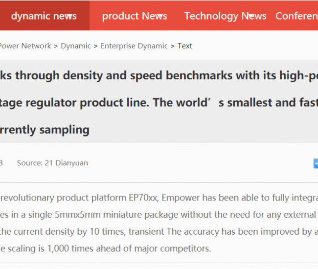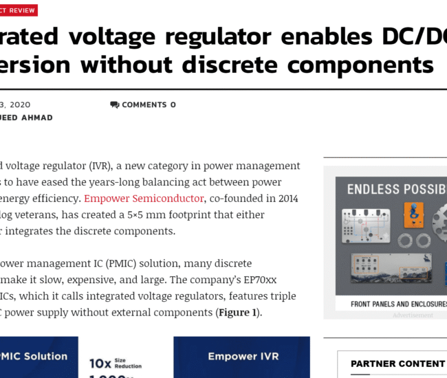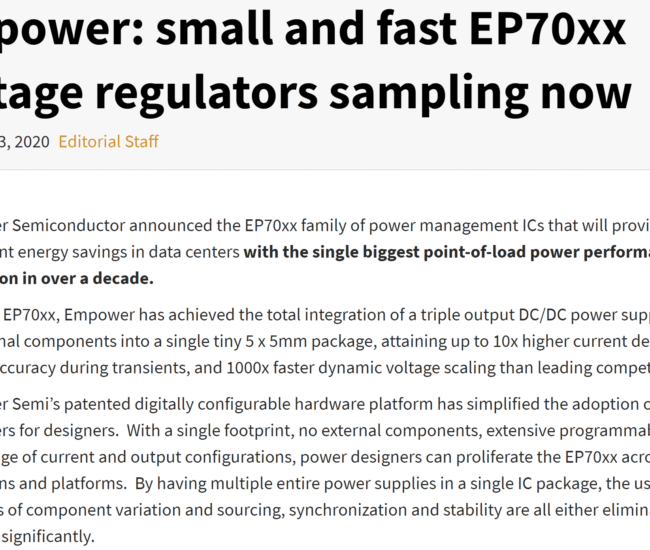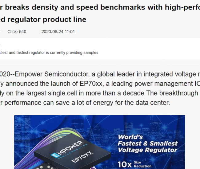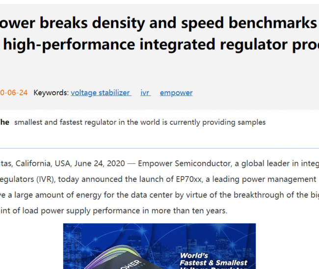 Empower breaks density and speed benchmarks with its high-performance integrated voltage regulator product line. The world’s smallest and fastest voltage regulator is currently offering samples