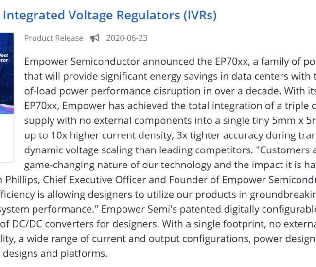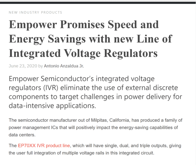 Empower Promises Speed and Energy Savings with new Line of Integrated Voltage Regulators